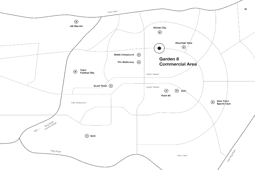 - منطقة المراسم التجمع الخامس: يشكل جاردن 8 جزءاً لا يتجزأ من هذا المحيط الحيوي.