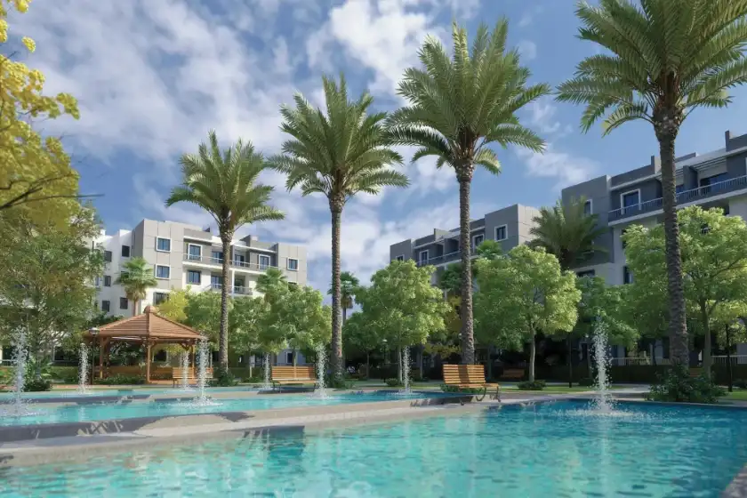 - نافورة راقصة ومساحات مائية تعزز من جمال الكمبوند بجانب وجود مراكز تجارية لشراء جميع اللوازم والمنتجات.