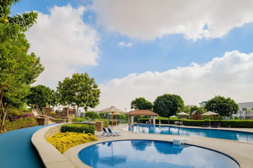 - حمامات السباحة: يضم الكمبوند مجموعة من حمامات السباحة ذات التصميمات المتنوعة والمساحات المختلفة، التي تتناسب مع جميع الأعمار من الأطفال إلى البالغين، مما يوفر بيئة ممتعة وآمنة للاستجمام.