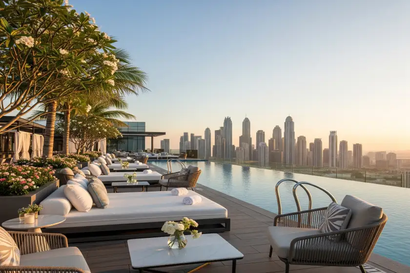 - Roof Top Infinity Pool: يمنحك الاستمتاع بالسباحة في مسبح لا نهائي على السطح، ويقدم لك إطلالات ساحرة وتجربة استجمام لا مثيل لها.