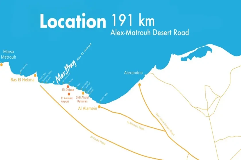 - مطار العلمين الدولي: يمكنك الوصول إلى مشروع Almarasem Ras El Hikma بسهولة من أي منطقة خارج مصر بفضل قربه من مطار العلمين الدولي.