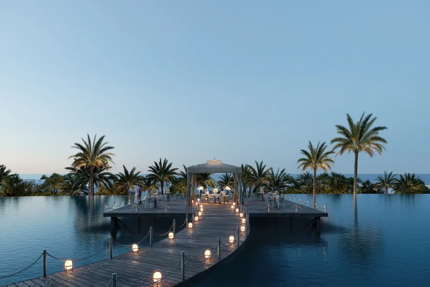 - شاطئ إنفينيتي الفريد: يتمتع المشروع بشاطئ إنفينيتي المرتفع الذي يمتد على كيلومتر كامل، مما يتيح للزوار الاستمتاع بإطلالة بانورامية مذهلة على البحر.