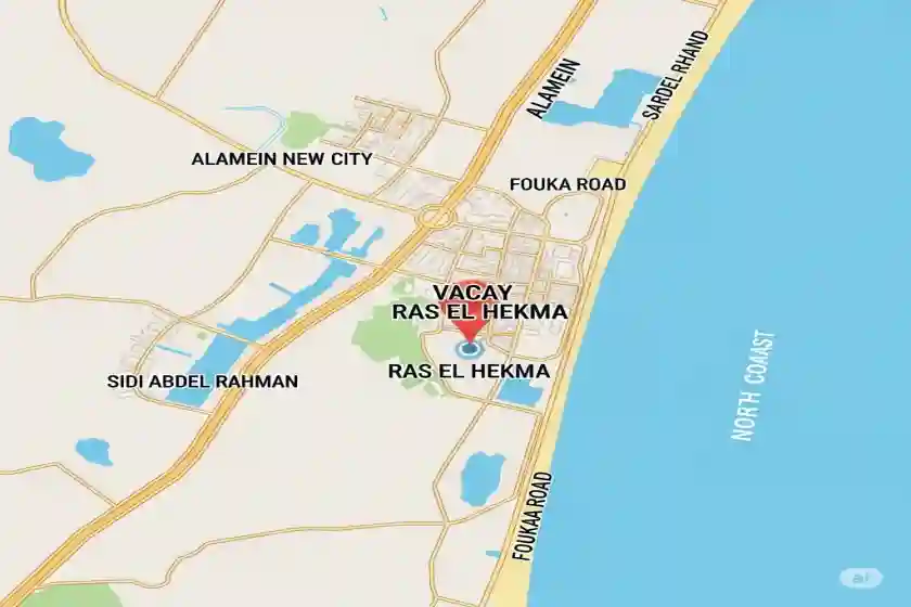 - مدينة العلمين الجديدة: تبعُد المدينة حوالي 40 إلى 50 دقيقة عن مشروع Vacay Ras El Hekma.