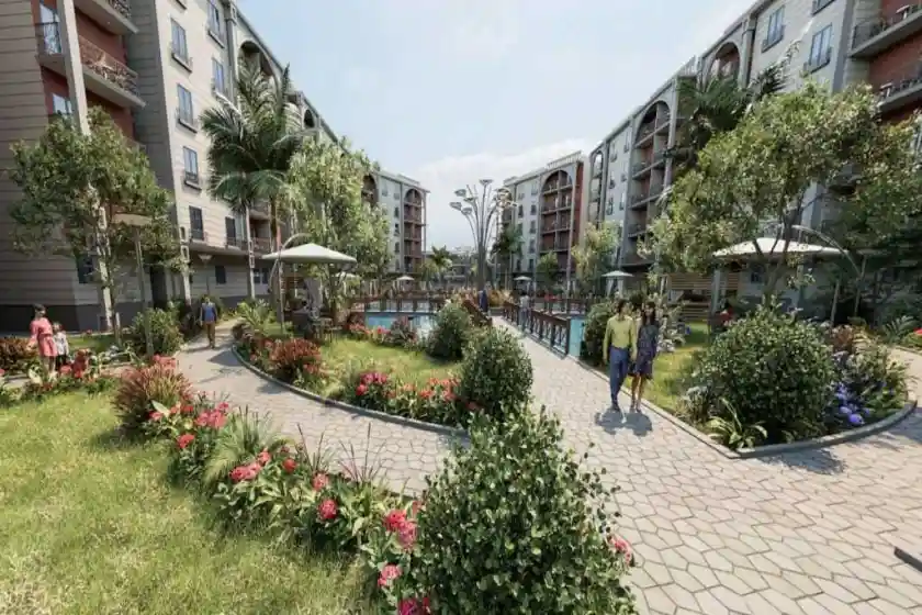 - يتميز الكمبوند بوجود مساحات خضراء شاسعة، مما يساهم في خلق بيئة هادئة تحسن من الحالة النفسية للسكان وتوفر لهم أجواء مثالية للأنشطة الترفيهية.