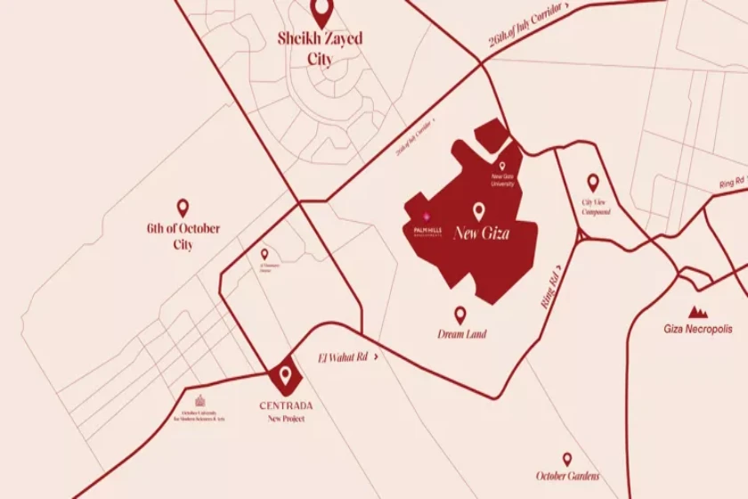 يقع بالقرب من الطرق والمحاور الرئيسية مثل طريق اسكندرية الصحراوي، والطريق الدائري، والعديد من الأماكن الخدمية والمؤسسات التعليمية والتجارية المختلفة، مما يسهل على القاطنين قضاء احتياجاتهم بكل سهولة، وجعل منه واجهة أساسية ومميزة للعملاء والمستثمرين.