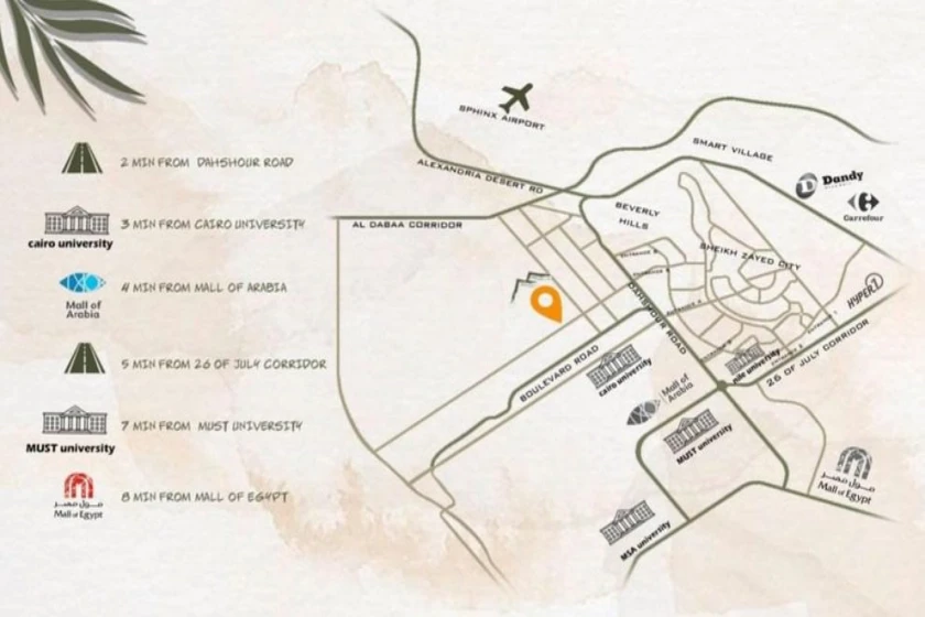 - يقع المشروع على بعد دقيقتين فقط من وصلة دهشور.