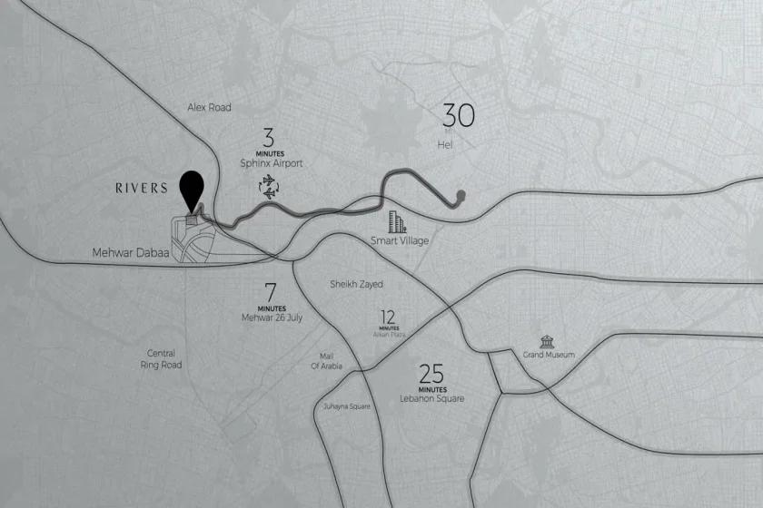 - المناطق والطرق القريبة من مشروع ريفيرز
