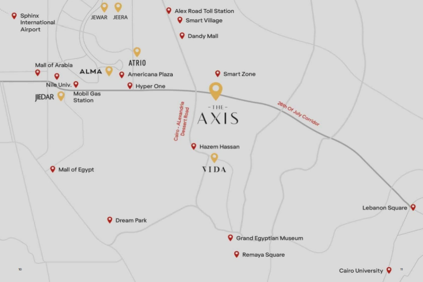 بفضل موقعه المركزي، يتيح The Axis 6 October وصولاً سلساً وسريعاً إلى المناطق التالية: